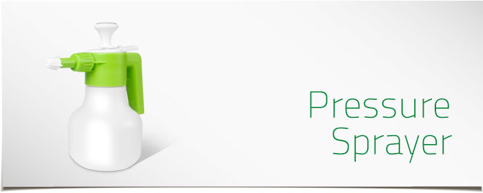 A pressure sprayer of impact-resistant plastic with spraying control for both spot spraying and continuous spraying. For all chemicals miscible with water. Adjustable spraying pattern.
