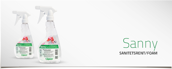 Sanny löser snabbt och effektivt hud-, tvål- och smutsavlagringar samt lättare kalkbeläggningar. Har en god kalk- och bakteriehämmande effekt. Plastflaska med spraypump och skummunstycke/brukslösning.