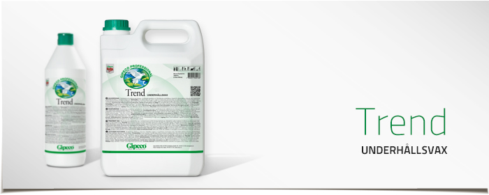 Endast en produkt för ytbehandling och underhåll. Slitstarkt golvvax för ytbehandling av alla golv. Bildar en elastisk, hård smutsavvisande och lättstädad ytfilm. Fantastiskt lätt att stryka ut. Filmbildningstiden är kort, torkar snabbt. Bygger vid regelmässigt underhåll upp Trendytan allt efter slitage. Mycket lämplig i kombiskurmaskiner. Trend kan efter fyra dygn poleras med lågvarvsmaskin och polerrondell och efter fem månader även poleras med högvarvsmaskin, varvid filmens smuts-frånstötande egenskaper ökar. Ett golv som ytbehandlats med Trend och regelmässigt underhålls med Trend behöver inte göras om på 4-5 år.
